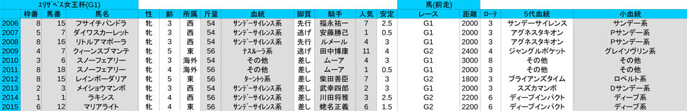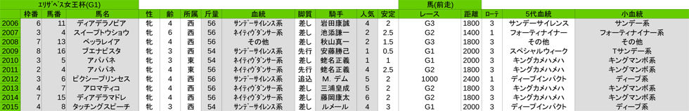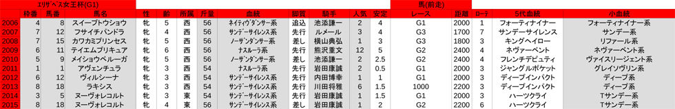 TOP→G1レースの数字→エリザベス女王杯