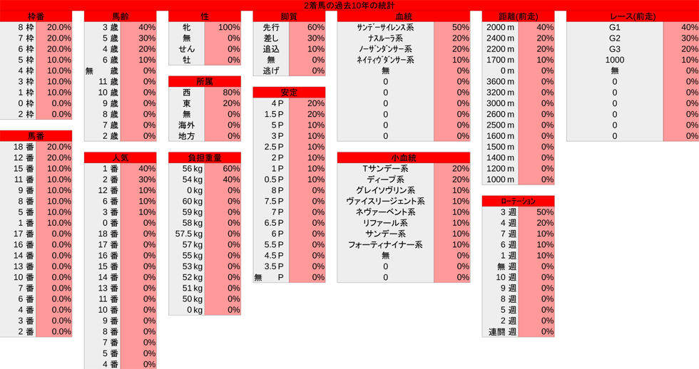 2着馬~過去10年の統計~
