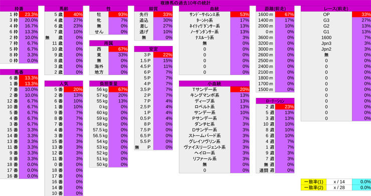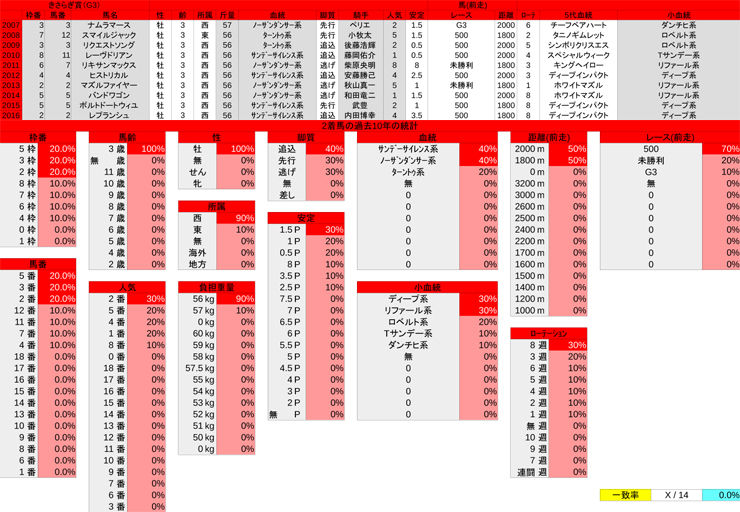 レース単位で記事を書いていますので、統計と予想は同じ記事内に追記していきます。気になるレースがありましたら、ブックマークをするかgoogleで『週に1レース』で検索してみてくださいっ///