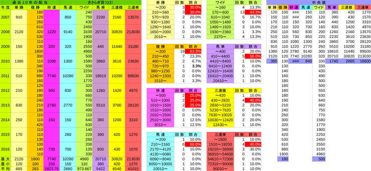 当ブログのレース記事は月~木曜日の22時に過去10年分の統計を公開。その後JRAの出馬表が公開された後、金曜日の22時頃から日曜のレース直前までの間に予想を当ブログとレジまぐとうまぐりちゃんに掲載する予定です。小倉大賞典(G3)