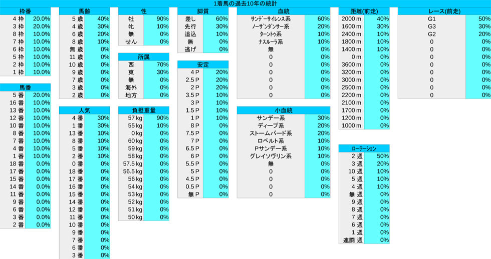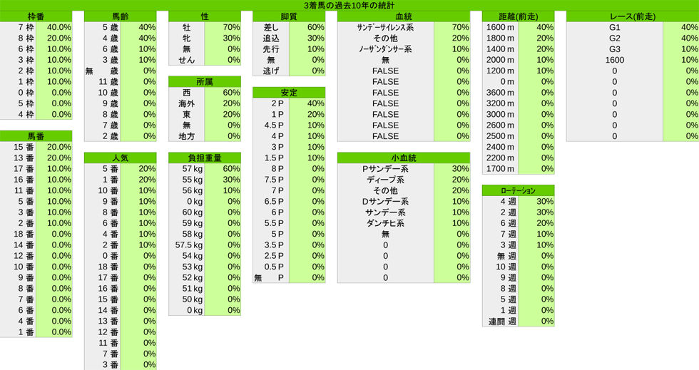 過去のレース結果と簡単な統計を掲載しています。これらの数字から何かを拾い上げて、予想に役立てていただけると嬉しいです。