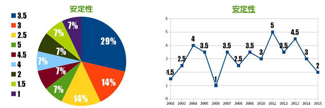 ※【安定】は人気と実際の着順の誤差を数値化したものです ※【ローテ】の"無"は未集計のことです